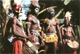 KULTURDas Kulturerbe Afrikas wird nicht in Museen bewahrt, sondern ist im Leben allgegenwärtig! Kultur manifestiert sich überall in den sozialen, politischen und ökonomischen Systemen. In Guinea ist der Mensch praktisch von der Wiege bis zum Grab eingebunden in überlieferte Rituale. Diese wiederum sind stets von Musik und Tanz begleitet bzw. finden darin erst ihre Ausdrucksform. Traditionelle Fest-AnlässeSeien es familiäre Ereignisse wie Taufe, Hochzeit, soziale wie die Initiation der Jungen und Mädchen, Verabschiedung einer Braut von ihren Freundinnen oder allgemeine wie Aussaat, Ernte, Beginn der Regenzeit etc.: jeder Anlass ist Grund zu einem großen Fest, das immer wieder nach vorgegebenen Regeln gestaltet und gefeiert wird. Dabei werden die traditionellen Rhythmen gespielt, die dem Anlass des Festes entsprechen, die dazugehörigen Lieder gesungen und die Tänze getanzt. Außerdem dürfen spezielle Masken nur zu den jeweiligen Ereignissen in Erscheinung treten ( manche nur einmal im Jahr ). Alltags-SpektakelAber auch ohne diese besonderen Anlässe sind Musik und Tanz ein fester Bestandteil des Alltags.Bei vielen Feiern ist es üblich, dass eine Gruppe von Trommlern aufspielt. Die Besetzung besteht grundsätzlich aus den drei Basstrommeln Doundoun, Sangban und Kenkeni, deren gemeinsame Melodie die Basis der Rhythmen darstellt. Dazu spielen dann die Begleitdjembe(s) und die Solodjembé mit ihrem besonders herausragendem Klang. Das Publikum steht oder sitzt dabei im Kreis, und wen die Tanzlust packt, springt in die Mitte des Kreises und hat so für kurze Zeit seinen/ihren eigenen Auftritt, bis sich Musiker und Tänzer/in durch Töne und Körperausdruck verständigen, dass die Session jetzt beendet ist - oder bis die nächsten Tanzkandidaten sich energisch, aber humorvoll den Platz erobern. Traditionelle InstrumenteEs gibt jedoch auch weitaus leisere Töne bei der traditionellen Musik Guineas. Im ganzen Land verbreitete Musikinstrumentesind z. B. ![]() ... aus Holz das Balaphon (eine Art Xylophon), die Schlitztrommel Krin (aus Waldguinea), daneben verschiedene Flöten; ... Saiteninstrumente wie die Kora (westafrikanische Harfe, rechts großes Bild), die N’Goni und der Bolong (Basstöne, kleines Bild) ... aus Kalebassen werden auch verschiedene Rasseln (mit Kernen gefüllt oder von Muscheln/ Perlen umknüpft) hergestellt, eine halbierte Kalebasse dient umgedreht auf einem Eimer Wasser für "water-percussion"... BalletsEine besondere Funktion und Verantwortung kommt den